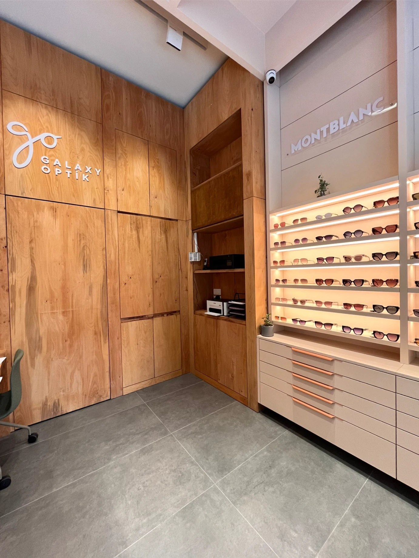 Galaksi Optik mağazası için 170 m²’lik alanda özel mobilya üretimi gerçekleştirildi.